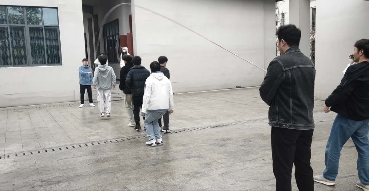 本次活动前期通过QQ进行线上宣传,在线上发放问卷调查表。线上宣传反响热烈,同学们踊跃报名参与进来。12月12日下午,在活动负责人讲解活动规则后,同学们先进行适当程度的热身准备,防止在活动过程中出现不适。同学们双手紧握绳柄,在手臂的带动下,脚上的步子不断调整,纵使天气寒冷,同学们想展示花式跳绳技巧的内心依然热情似火。
