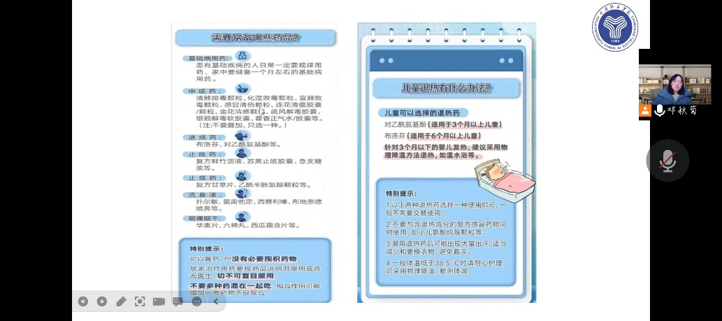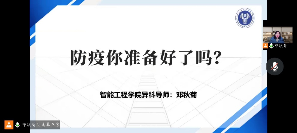 活动伊始,邓秋菊老师询问同学们感染新冠病毒的情况,并提出来科学的防疫措施,以及“阳”了之后应该怎么做。