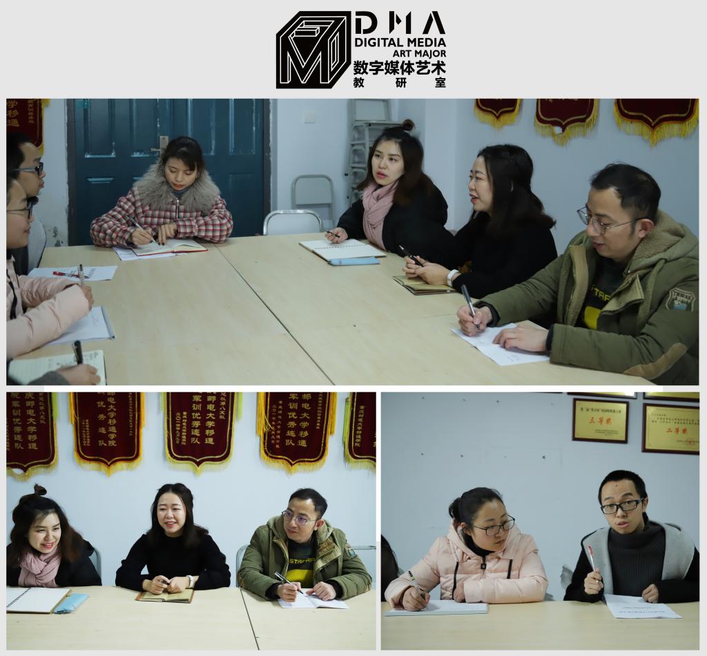 会议伊始,龚晓雪主任就数字媒体艺术专业2018全年整体工作从多方面进行了总结。在教研室建设方面,坚定学校三位一体的培养模式,践行学院的完满教育方针,围绕学院“信息产业商学院”的办学定位等开展了一系列的活动。教研室以加强自身建设为重点,形成合力共谋发展,为各项工作顺利开展提供了坚强的组织和践行保障。不断加强师德师风的建设,提高团队思想素质。同时,全年教研室还不定期组织教师进行内外的学术交流。如:到重庆科技学院、重庆涉外商贸学院等进行交流和学习,通过对比了解自身的不足,有针对性的学习和提高。认真学习贯彻落实《重庆邮电大学移通学院关于提高课堂教学质量的实施意见》、《重庆邮电大学移通学院教师教学工作规范》等文件,规范和加强教学管理,提高教学质量,建立了教学状态月报告制度,全方位的对教师的教学进行有效的监督和管理。