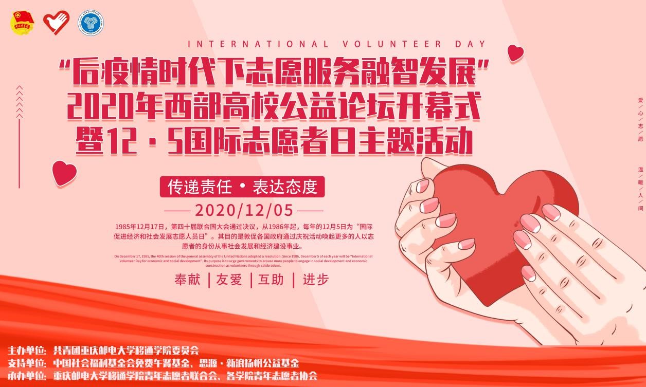 结合当下,展望未来。我校以12·5国际志愿者日为契机,将展开为期一个月的2020年西部高校公益论坛活动,尽力实现完满教育工作内涵与志愿服务理念融汇,智慧与创新并行,让我校志愿乃至西部高校志愿保持永久生命力与创造力。志愿服务,我们是认真的,移通志愿,未来可期。