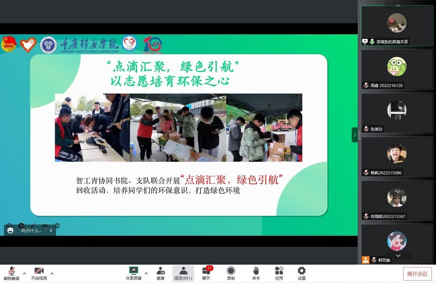 自2018年国务院办公厅印发《“无废城市”建设试点工作方案》以来,我市、我区全力推进“无废城市”的建设。同样,我校也积极响应合川区关于“无废校园”建设的号召。为使我校学子更加深入的了解“无废”理念,践行绿色环保,智能工程学院青年志愿者协会于12月14日下午一点开展“促环保,助公益”主题宣讲会,共计200余人参与。