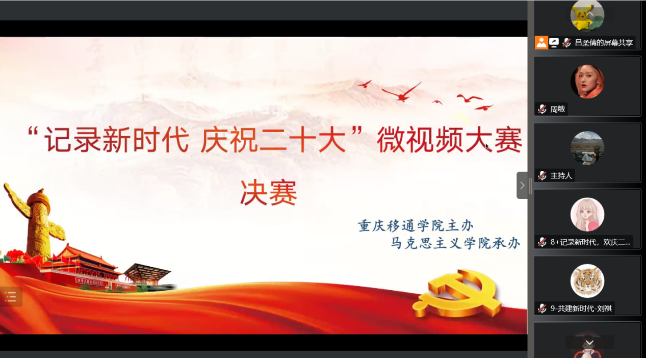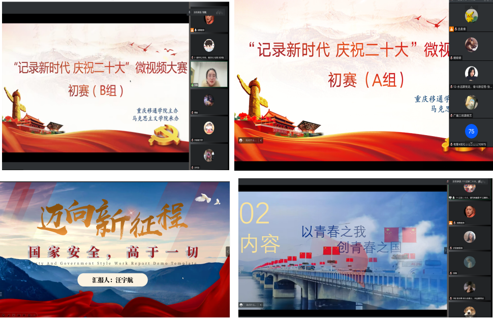 为学习宣传贯彻党的二十大精神,全面贯彻党的教育方针,充分发挥思政课在大学生思想政治教育中的主渠道作用,坚持“以学生为中心”的原则,引导学生用眼睛去观察新时代,用心去感悟新时代十年的伟大变革。12月14日下午16时,马克思主义学院“记录新时代 庆祝二十大”微视频大赛决赛顺利举行。