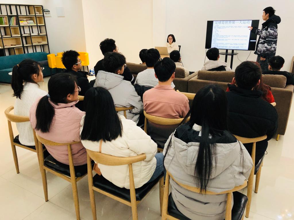 为持续推进行者公园书院群朋辈互助圈层构建,实现书院学子间朋辈引领、朋辈互助作用,12月6日,行者公园书院群举办了“朋辈面对面”第二期活动。此次活动邀请到了松格书院2018级轨道将通信号与控制专业,同时也是校足球队成员的陈政忠同学为书院的同学们讲解足球基础知识。