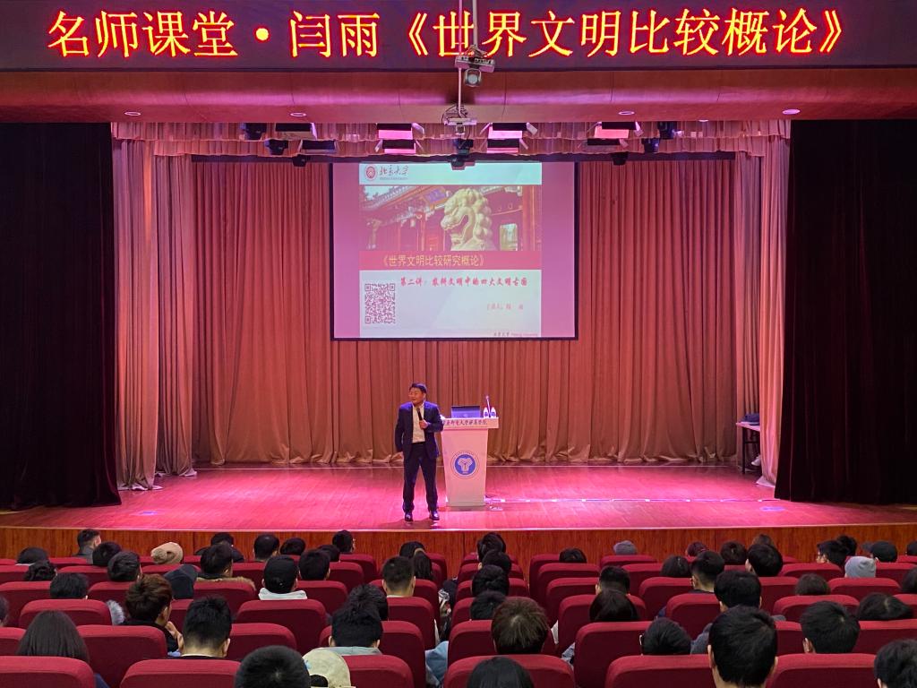 在为同学们做完短暂的人生规划后,闫雨老师引出了农耕文明,五谷六畜和二十四节气,虽然这看似是生活常识,但如果真的让人回答,答案又是千奇百怪。为了让同学们更好的理解农耕文明,闫雨老师从以下三个方面为我们详细介绍:农耕文明的特质、四大文明古国比较、其他农耕文明时期的文明碎片。梁启超先生所提出的“四大文明古国”,具体就是指两河流域、古印度、古埃及和中国这四个古国。每个古文明都有自己独特的优势,像两河文明拥有着世界最早的系统宗教——犹太教、古埃及发明了世界最早的数学——古埃及数学等等,这些种种都让我们看到在历史进程的不断演变中,文化也在不断被推动进步。这其中,闫雨老师重点提到了郑和下西洋这一历史事件,当时最大的船舶足以容纳2万人,在那个时候,并没有钢铁船架,只有用木块。用木船承载了2万人,并装载了大量的货物,足以见古人的智慧无穷无尽。