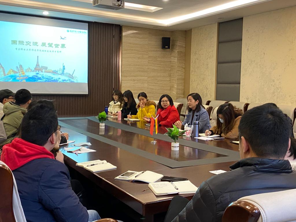 本月初,国际处组建了由国际处全体教师组成的第二支“宣讲团”,国际处教师“宣讲团”主要面向学校各部门教师团队开展宣讲,“宣讲团”分别于11月27日,12月3日和12月4日走进了大数据与软件学院,艺术传媒学院和通信与物联网工程学院三所学院,向学院学生工作团队的老师们介绍了我校国际化发展的情况和国际交流项目,一方面让老师们清楚地了解我校国际化发展的情况和国际交流项目的概况,另一方面也是希望老师们能更好地为学生们做好引导和分析,帮助学生提前做好规划和准备。