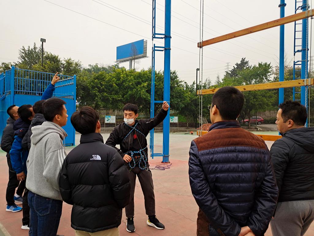 《论语》有曰:“工欲善其事,必先利其器。”想要进行任何一项工作,前期准备、设施检查是必不可少的。为此,11月30日,拓展训练部邀请拓展高空场地承建方河南建培实业发展有限公司培训部宋教练进行高空设施操作流程、设备的安全讲解、场地建设相关问题等,预防可能发生的安全事故。