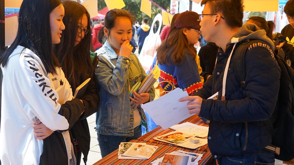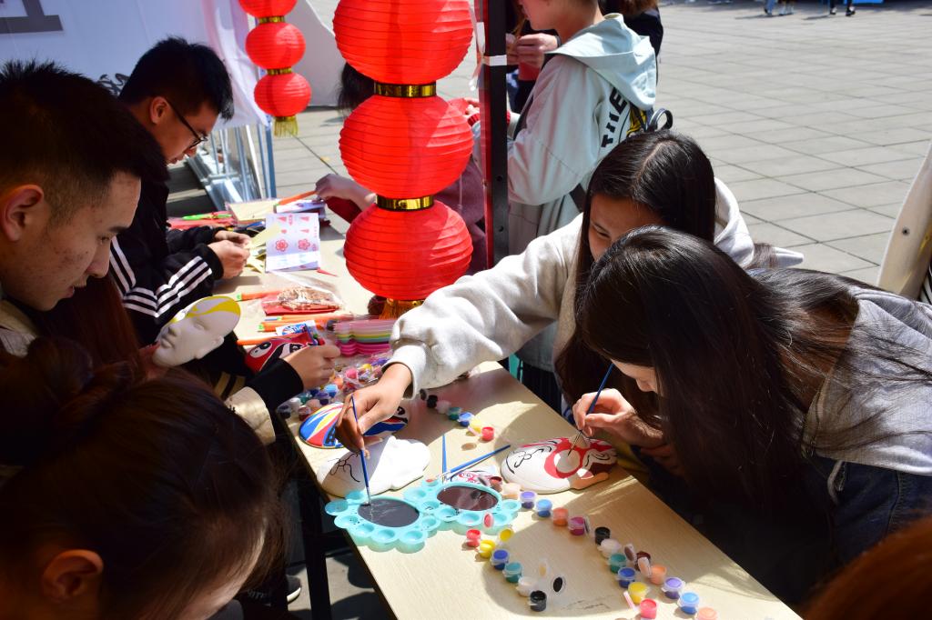 辽阔的三江平原,连绵起伏的长白山山脉,源远流长的松花江这里是大东北。“二人转”挑战赛,同学们在开始玩的时候不太娴熟,总是把手绢甩飞,在熟悉了之后大家都是开心的转起了一个又一个手绢;“传统剪纸”初体验,体验东北传统技艺,剪纸完成作品之后,工作人员拍完照,参与者就可以带走收藏;“东北话”模仿赛,参与者观看东北话版《生僻字》视频后,模仿出来,奇怪的发音引得路人哈哈大笑。大家在这里找到了熟悉的味道,也让不同地区的朋友体验东北文化。