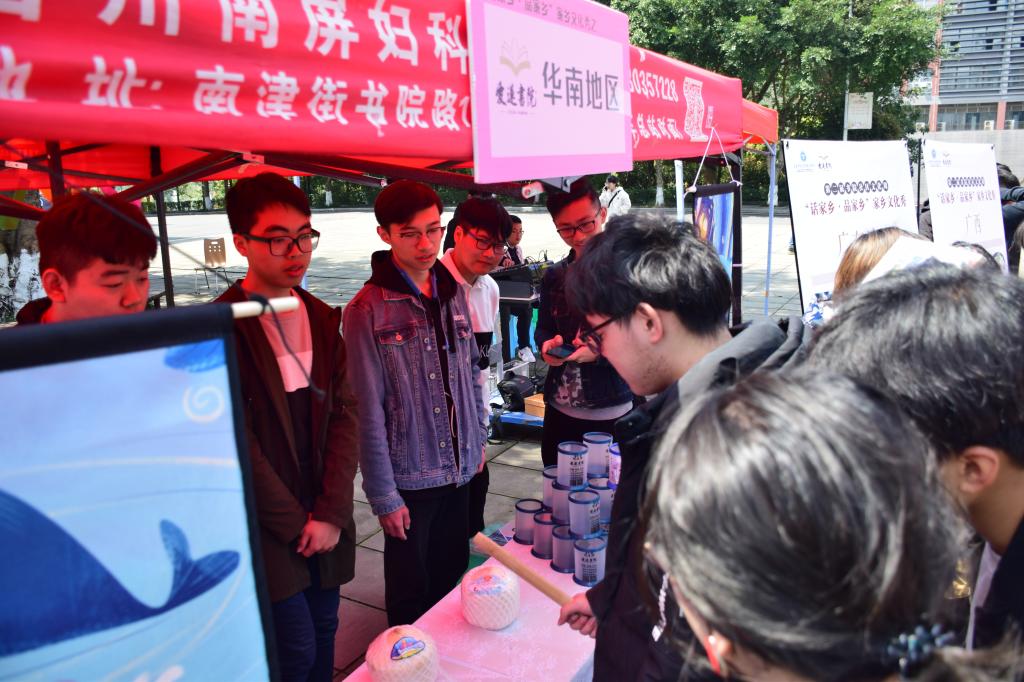 一说到华南,莲小君就想起了大海、沙滩、明媚的阳光还有轻柔的纱幔。当然,美食也不能落下,堂堂大吃省怎能没有姓名?广东的早茶鲜美、广西的肠粉爽滑、海南的椰子可口、港澳的小吃诱人都一一摆放在展台上。展台上一共设计了两个小游戏,同学们可以参与华南地区小知识问答,也可以来考验考验自己是不是那个能打中椰子的幸运儿。闭上眼睛,放开步子,大胆往前,“咚”地一声,完美错过,没有打中也不要灰心,一颗椰子糖甜蜜你的心情。