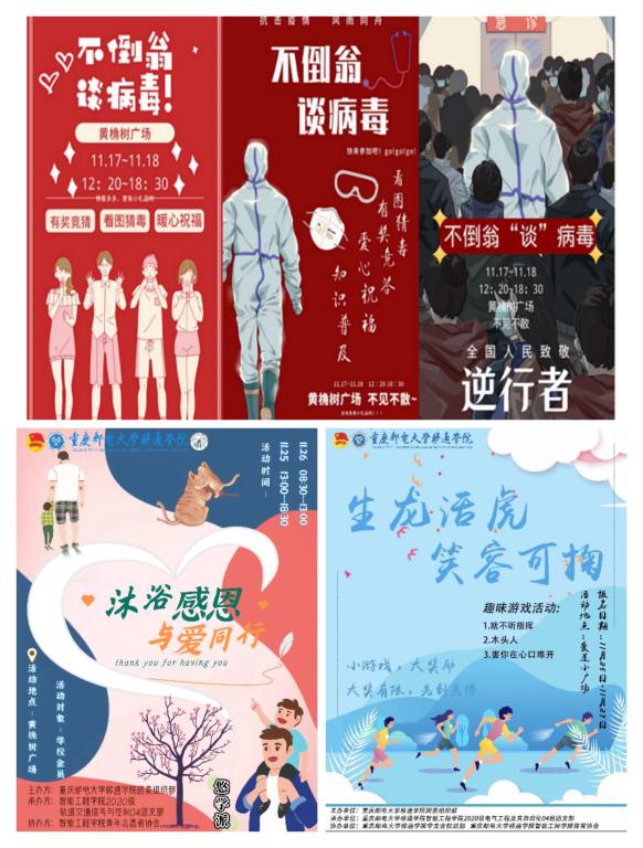 “心点亮一盏灯,爱聚成一座城”,疫情还未褪去,为让更多的同学深入了解新冠病毒,提高对病毒的警惕,知道如何防范,2020级自动化01团支部成员开展了“不倒翁·‘谈’病毒”主题活动。活动中设立有奖问答、看图猜毒、爱心祝福等游戏环节。众多参与者有序进行着活动,各院系的参与者与穿着红马甲的工作人员,构成了黄桷树广场一道独特的风景。天气晴朗,微风不燥,同学们通过认识新冠病毒、了解新冠病毒,学到了防护知识和防疫措施。同时,同学们以祝福便签的形式为“可爱”的医护人员和新冠患者送上了衷心的期盼及真挚的祝福。