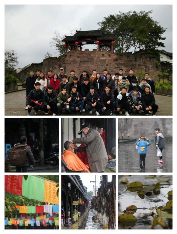 古镇特有的建筑风格也为当地的一切披上了一层厚重的历史感。深入山间,在竹林中与过往农夫交谈,分享着彼此截然不同的生活状态,忙碌快节奏的城市生活与清幽闲静的林中小屋形成了鲜明的对比。一碗山泉水煮出的茶水,别有风味。两侧的山峦,静默而雄伟,一首诗蓦然浮现至心头:“千山鸟飞绝,万径人踪灭,孤舟蓑笠翁,独钓寒江雪”。最后,支部成员分享此行的感悟与收获,一起相互品尝美食,讲述故事,赠送礼物,欢笑声萦绕在耳畔,也为古镇增添了一抹新鲜的活力。