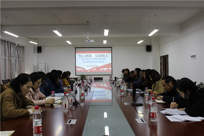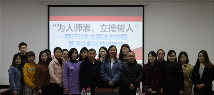 “才者,德之资也;德者,才之帅也。”人才培养,关键在教师;教师队伍素质直接决定着大学办学能力和水平,关系着学生的健康成长。评价教师队伍素质的第一标准为师德师风。为进一步加强师德师风建设,规范教师教育教学行为。3月27日下午16点,思政教学部在艺术楼101会议室举行了陶行知先生事迹进校园暨师德师风培训活动。此次活动围绕“为人师表,立德树人”的主题展开,由政治理论教研室教学团队带头人邹建平老师主持,思政教学部全体教师参加。