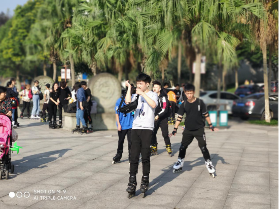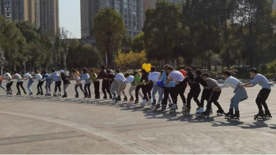 各学校轮滑爱好者相聚在一起,进行各种高难度动作表演,如:横向脚尖括弧过桩、双脚尖画圆过桩等,赢得现场一片欢呼与掌声,各成员之间由衷感受到彼此的精湛技艺。轮滑运动不仅仅是一项户外体育运动,在现代快节奏的生活当下更成为了健康的生活方式,一种潮流的街头文化,一个个年轻的轮滑爱好者用自己的步伐诠释着青春,大家都体会到了追求自我,挑战自我的乐趣。