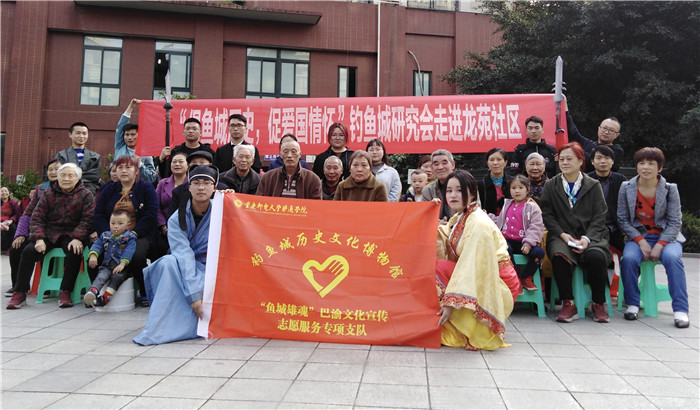 钓鱼城研究会开展以博物馆为平台开展“走出去,引进来”系列志愿活动,既是对钓鱼城历史文化的宣传,也丰富了社区文化。钓鱼城研究会进社区,弘扬了鱼城精神,并以历史情景剧表演等形式让传统文化在社区中绽放色彩。文化的清香经久不息,历史的传承还将继续。走出刻板的历史,走进多彩的生活,将鱼城历史带给鱼城人民,从未停息。