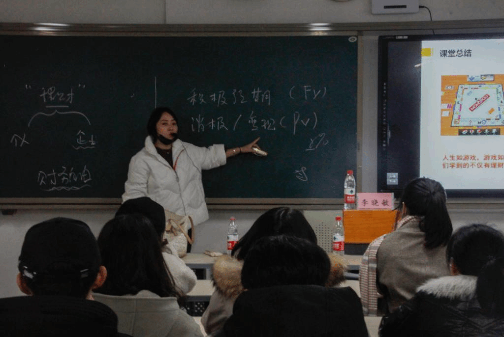 获取幸福感,培养价值观。李晓敏老师就“为什么要学习投资理财”这一问题进行了回答。她认为学习投资理财是为了达到“时间与金钱平衡”实现财务自由,而实现财务自由的最终目标是为了获得“幸福感”。随后,李晓敏老师通过“大富翁”的游戏讲解提醒同学们要有正确的消费观与投资方式。思维碰撞,辩论争锋。李晓敏老师组织同学们对“大学生的婚恋观”“大学生要不要做基金”两个辩题进行讨论。深入了解同学们针对于此的看法之后,再合理解析同学们的职业性格,同时她还提出大学生应勇于争取机会,展示自我。