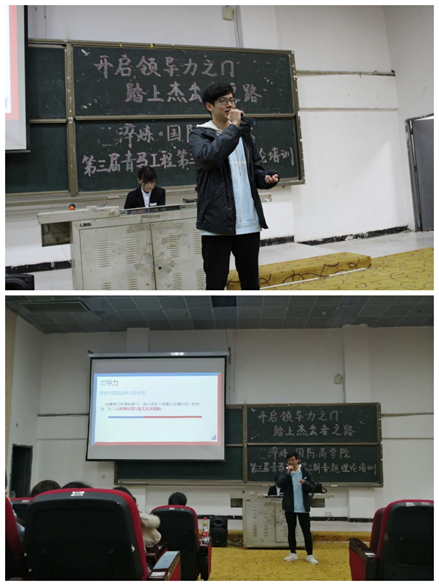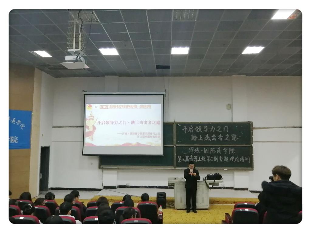 12月淬炼·国际商学院联动融合、整合资源,以打造“青马工程”完骨领导力为主线,依托学院商科教育领导力课程,依托完满达人领导力分享,多层级多维度开展本月培训。淬炼商学院团总支于2020年12月9日下午4:30在3302开展了“开启领导力之门·踏上杰出者之路”淬炼·国际商学院第三届“青马工程”完满教育学生骨干培养计划(初阶班)第三期专题理论培训。出席本次培训会的嘉宾有淬炼·国际商学院领导力课程教研室主任李丹、组织建设板块指导老师王玉勤以及第八季“完满·达人”工作达人——团委新媒体工作室的代表。