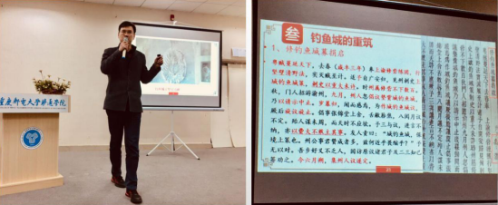 2020年12月9日晚七点,我校图书馆“双子湖”文化之导师“悦”读分享会第十一期在图书馆12楼文化活动室如期举行。我校创意写作学院的方刚老师和钓鱼城研究院副院长位光辉老师应邀出席活动。两位老师与现场八十余位同学一起分享了他们各自的文史主题,品评人物春秋,揭秘巴蜀史志。