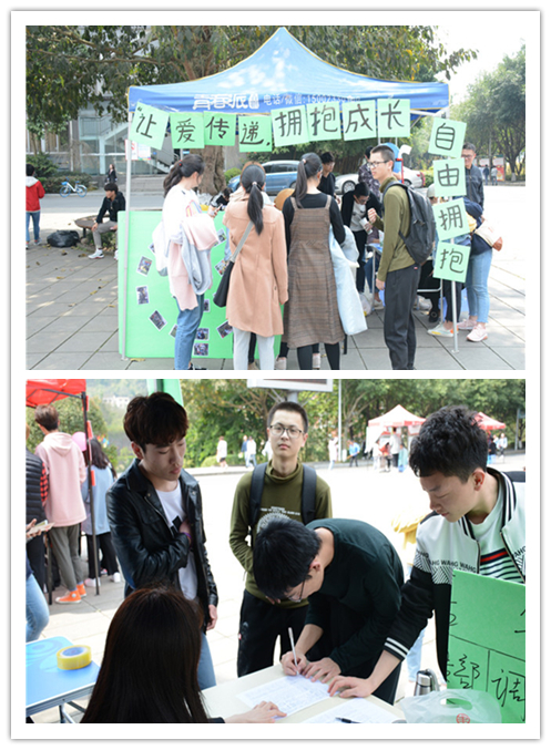 2019年3月中旬,智能工程学院举办了“让爱传递,拥抱成长的收获”自由拥抱系列活动。3月16日,活动志愿者与小朋友欢聚于青少年活动中心,在游戏中传递爱的温暖。3月20日在学校黄桷树广场进行了自由拥抱及照片征集活动,让广大师生感受到拥抱的温暖与魅力。据悉,此次活动参与人数共计437人。
