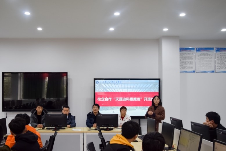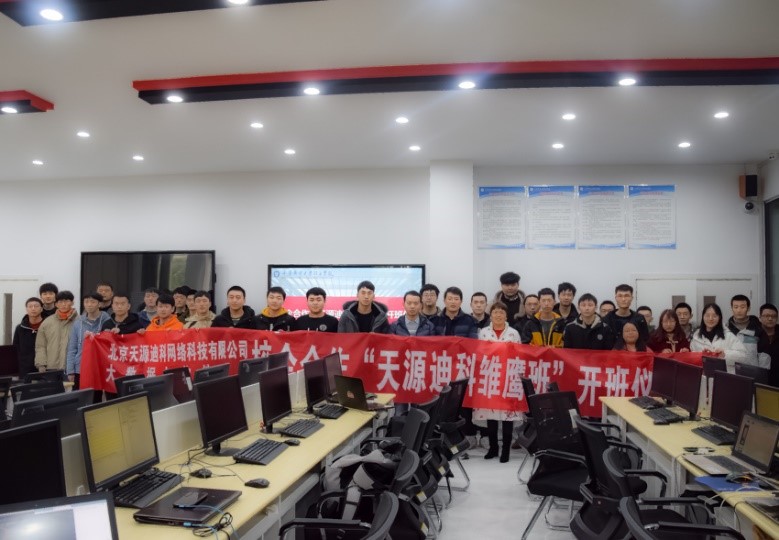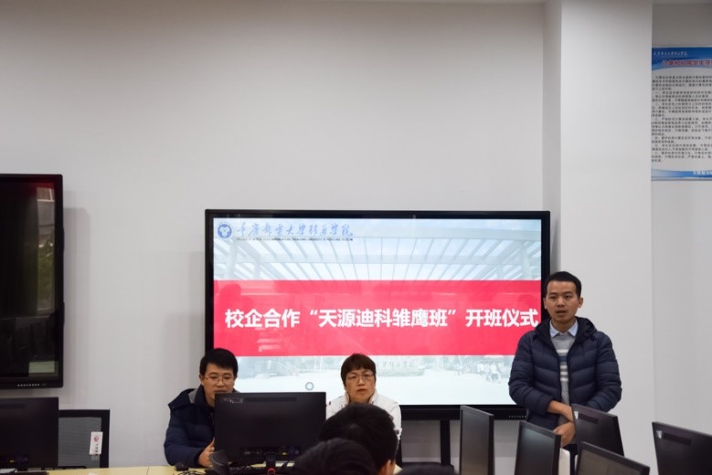 在社会快速发展的今天,求职择业成了当代大学生最为关注的问题。为解决大学生就业创业的难题,提高学生的专业技能,培养学生的就业意识,帮助学生树立正确的择业就业观,大数据与软件学院和北京天源迪科网络有限公司的校企合作“天源迪科雏鹰班”开班仪式于2020年12月9日14:30在s3302举行。莅临本次活动的嘉宾有来自北京天源迪科网络有限公司的两位企业导师,大数据与软件学院院长闫会峰教授,教学副院长向碧群教授,创新创业指导老师何倩老师。