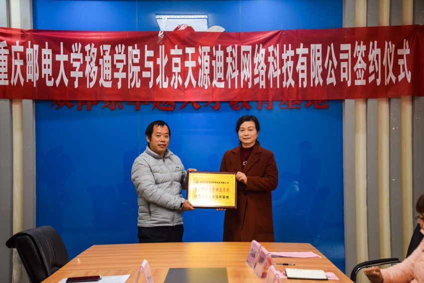 双方表示,希望以这次会议的举行和协议的签署为契机,进一步深化各项合作,发挥各自优势,实现互利共赢。授牌仪式交接完成,重庆邮电大学移通学院与北京天源迪科网络科技有限公司签约仪式圆满成功!