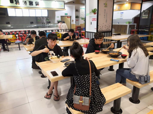 来自2018级的秦艳霞同学作为学习委员,也提到了她对于早自习的困惑:这学期很多学生都不愿意来上早自习,有些来了也是耍手机。特别是冬天,很多人都迟到早退,所以觉得没有必要上早自习。对此吴主任提出以下建议:一、早自习应从思想上做工作,另外也要采取实际的惩罚措施,不起作用要分析,把早自习纳入评优评奖的考核。二、早自习是有价值的,早自习要想开展的更好,学生必须主动参与,保证百分百出勤,软硬兼施,做好考勤督促工作,加强完善,不能取消早自习。随后有更多的同学向吴主任提问,吴主任都一一解答了。座谈会后吴主任和师生代表移步至食堂共膳,氛围融洽,有说有笑。