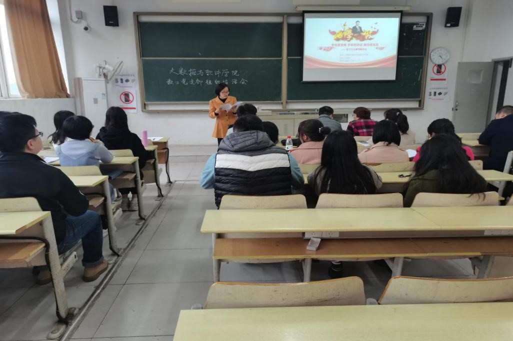 会议伊始,大数据与软件学院院长闫会峰教授通过诵读《必须坚持中国共产党领导万众一心风雨无阻向前进——论学习贯彻习近平总书记在纪念中国人民抗日战争暨世界反法西斯战争胜利75周年座谈会上重要讲话》后指出:历史雄辩地证明,中国共产党领导是全党全国各族人民共同意志和根本利益的体现,是实现中华民族伟大复兴的根本保证,因此党支部的各位党员同志应永不动摇的跟随党的脚步前进,万众一心,才能向着中华民族伟大复兴的光辉彼岸奋勇前进。在座的教师认真聆听着,也频频点头。