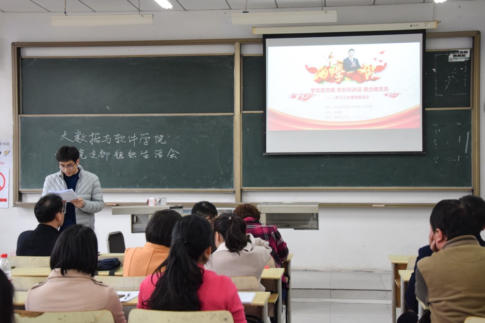 为全面贯彻党的领导,结合党组织建设的实际和经济社会发展的状况,不断推进理念创新,推进学习型党组织建设,加强教师党员思想提升,做到与时俱进,并使党组织的建设充满活力和生机。大数据与软件学院教工党支部以学习习近平总书记为专题,以“学党章党规,学系列讲话,做合格党员”为目标,于11月4日下午16点在第三实验楼开展了教工党支部组织生活会。大数据与软件学院全体教师党员参与了本次生活会。