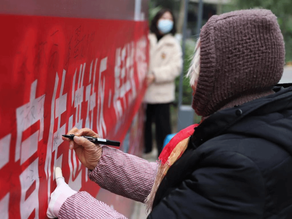 同学们耐心引导居民填写反诈问卷,并发放防诈骗宣传单,向居民们普及网络安全常识,谨防诈骗。随后居民们在反诈骗横幅上签字并与“合川反诈小卫士”合影,纷纷表示以后会提高警惕,保护好自己的“钱袋子”。