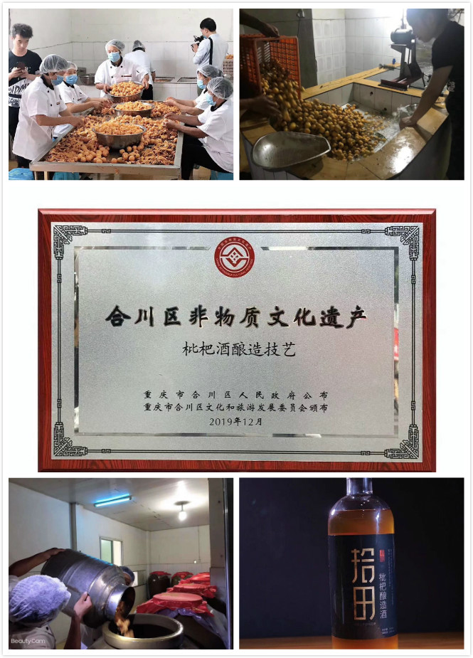 净果园里种植了大量的枇杷树,枇杷除了当水果食用之外,还可以发酵酿造成枇杷酒。一款名为“拾田”的纯果汁枇杷酒就出自于刘总的净果园。“拾田”枇杷酒的意蕴在于:拾穗心田,万物归于心,百谷始于田。心就是世界,心就是一切。定下来,静思寻心、拾起心田里的宝藏。褪去浮华、私利私欲、傲骄卑怯,一切本性的弱点逐渐淡化。心田里的真善美自然流露:本真、纯朴、充满爱与和谐。其酿造工艺堪称精细之致,由“采摘、选料、浸泡、清洗、去核、打浆、发酵、除渣、陈酿、老熟、下胶、澄清、灌装”等十余道工序组成。“拾田”枇杷酒特有橙黄色泽、澄清透明、香气浓郁,藏有枇杷特有的果香,正是因为这样匠心独具的工艺成就了上等的品质酒。