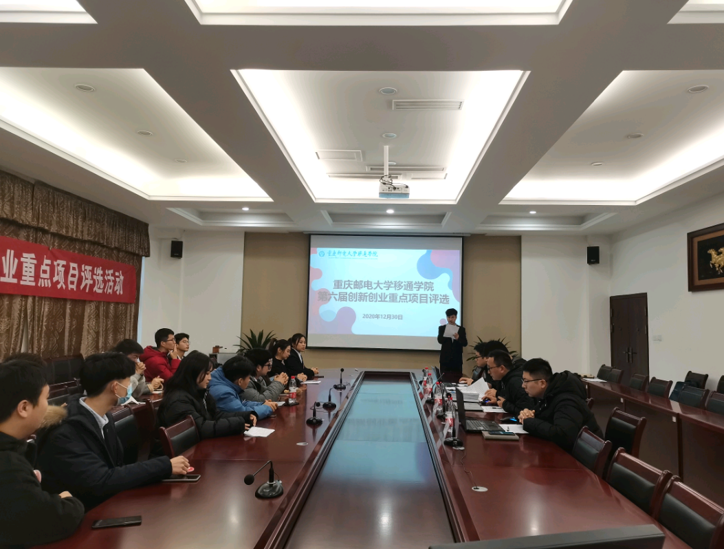 扎实做好大学生创新创业教育工作,积极营造良好创新创业氛围,培养具有社会责任感、创新意识、创业精神和创新创业能力的优秀人才,我校特此举办重庆邮电大学移通学院第六届创新创业重点项目评选活动于2020年12月30日10:00在行政楼A107开展。本次评选活动由我校创新创业导师库高级创新创业导师范保珠,创新创业导师库成员杨德龙、廖阳、佘桂隆4位导师组成评审组。