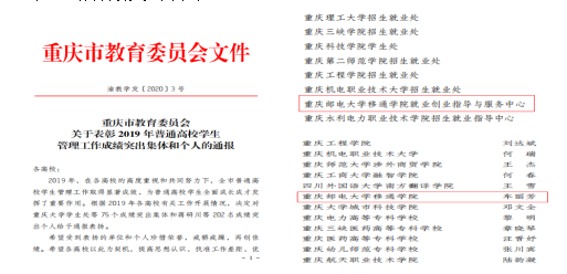 5月,就创中心荣获市教委“毕业生就业创业工作成绩突出集体”是独立学院中唯一获得该项成绩突出集体称号部门,就创中心车丽芳老师荣获市教委“毕业生就业创业工作成绩突出个人”。