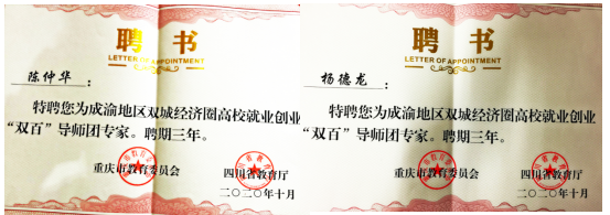 3.10月,陈仲华、杨德龙入选成渝两地教育系统、人社系统评选的成渝高校就业创业“双百”导师。