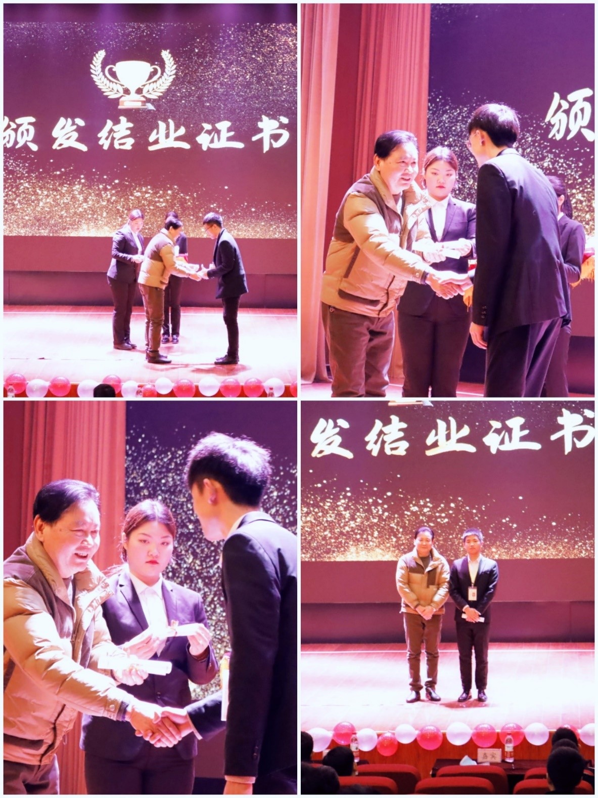 到了最激动人心的时刻:校长张德民教授为双体系十九期全体学员颁发结业证书。台上每一次的鞠躬和握手,都令人动容,这是双体教学理念的体现,也是一份责任。一卷结业证书,包裹着学员们的梦想,从此我们将踏上新的征程。