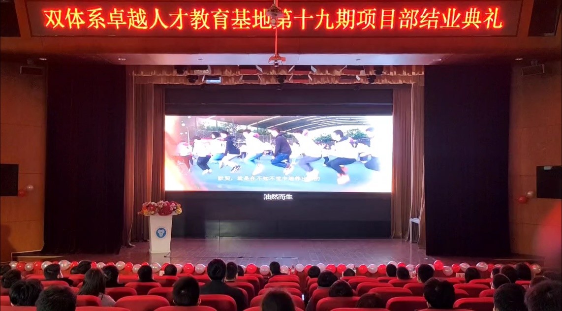 双体系卓越人才教育基地第十九期项目部结业典礼于2021年1月4日下午16点30分在下里巴人剧场举行。莅临本次活动的领导及嘉宾有:重庆移通学院校长张德民教授,校长助理周伟老师,双体系主任、就创中心主任陈仲华老师,双体系校友会理事江知航老师,以及双体系各职场、技术老师们。