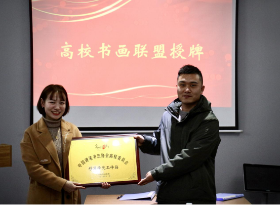 高校书画联盟网创始人仇山川先生和重庆邮电大学移通学院校园社团活动板块指导老师蔡星宇的讲话,使我们对项目的共育有了更深入的理解,也明白中华优秀传统文化正是需要这样的一个平台和资源,去传承、践行、丰富、发掘、保护、弘扬、发展。同时在各位见证者的参与下,由重庆邮电大学移通学院校园社团活动板块指导老师黄杜娟和仇山川先生进行授牌,我们共同担起传统文化传承的重任,接过传统文化人才的未来。