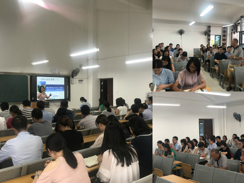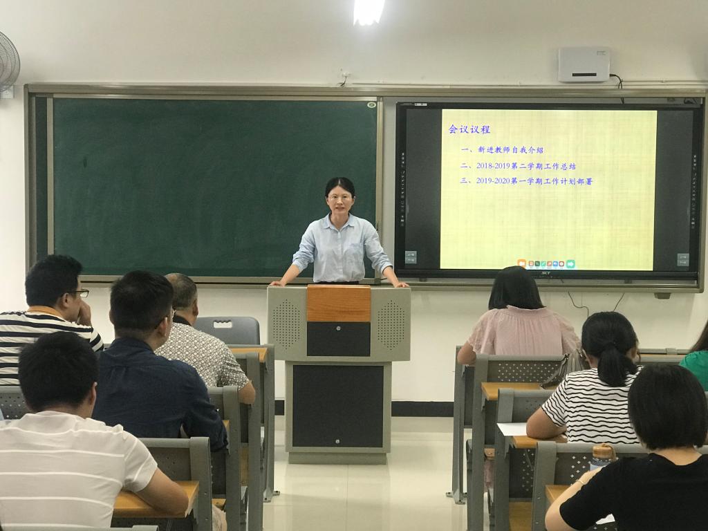 接着党晓圆副院长对2019-2020学年第一学期的工作进行了部署与解读,分别从常规工作、专业建设、实验室建设、团队建设、课程建设、教学研究、考研工作、学科竞赛、校企合作等九大方面做了部署。其中重点强调在课程建设方面,力争进一步加大力度。她讲到:课程是我们教学建设的基础,课程建设是我们基本建设的重要内容之一;课程建设涉及的内容也较多,包含教师队伍、教学内容、教学方法和手段、教材、教学管理等教学基本建设工作的诸多方面;并且对于学生来说,接触最多的就是我们的课堂,我们的课程,还有我们的课程体系,因此,课程建设是我们提高教学质量,强化学生知识水平,甚至增强学生就业能力的决定性环节,希望各教研室在新学期中以构建高效课堂、提高教学质量为切入点,以帮助年轻教师站稳站好讲台为目的,以“老带新”集中学习的方式积极开展课程内容和教学模式等研究,深化课堂改革,提升教学能力。
