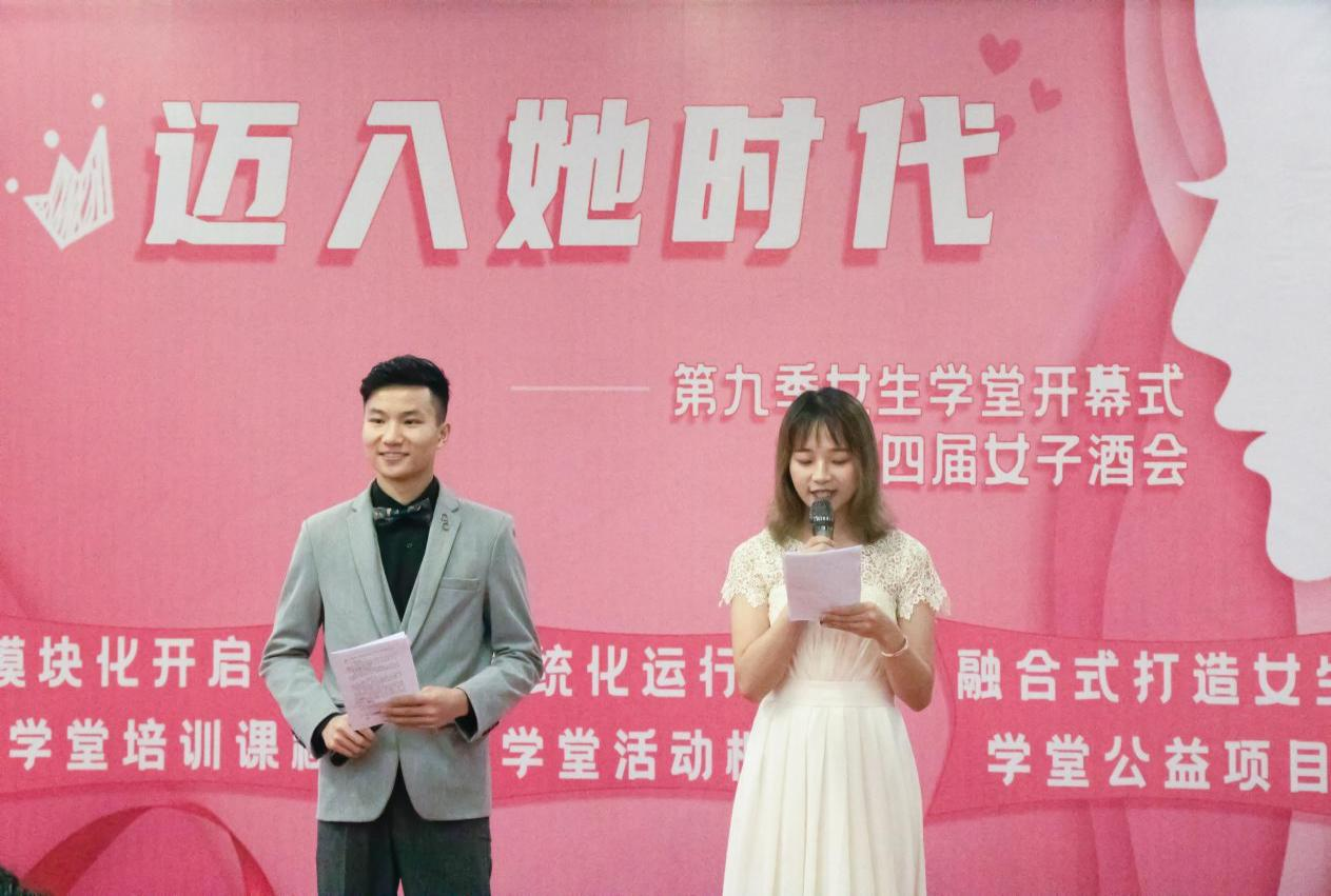 “她”时代已经到来,“她”力量正在改变世界。2021年11月3日19:00,重庆移通学院学生会开展的高校女生综合素养提升服务项目学生学堂正式开课,本次开课仪式结合疫情防控需求,采用酒会+开幕式的形式,活动现场内邀10余名线下嘉宾及线上400余名学生参加。在轻松愉快的氛围里公布第九季女生学堂的全新课程,带给女大学生未来发展新观念,新思考,新启发。
