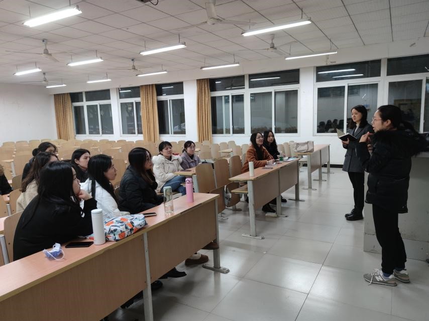 分享。冯丽丽老师和赵艳老师先后分享了自己的教学教研经验。冯丽丽老师建议大家多学习优秀教师的优点和特色,将其融入到自己的教学中,通过不断的模仿来探索自己的教学风格。赵艳老师认为一门课要讲好至少需要三年时间,要想讲得精彩则需要更长的时间,她鼓励新老师在课堂中将知识传授与德育相结合,同时积极找准自己的科研教改方向,专注于某一个领域持续下功夫。