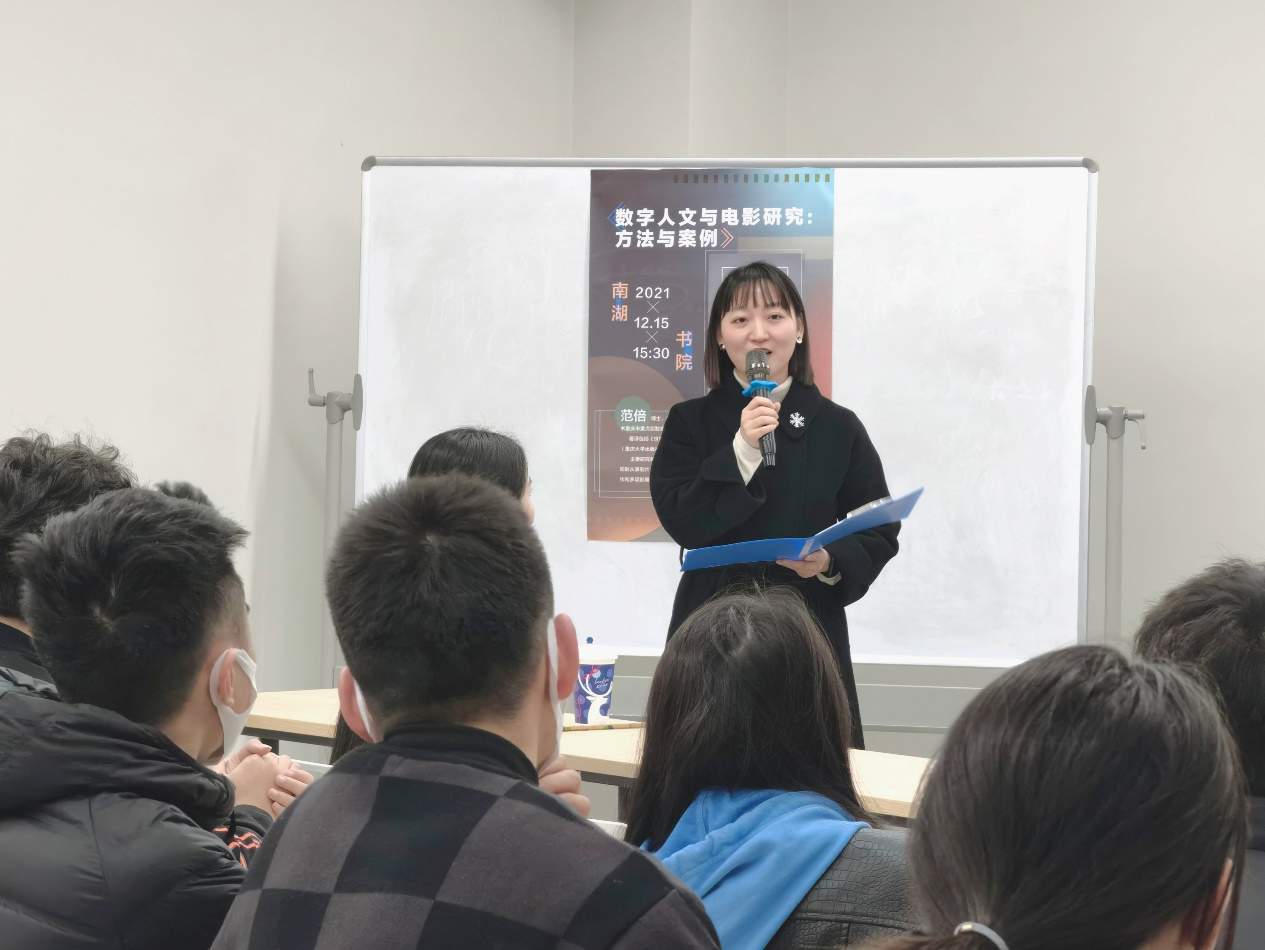 为进一步深化践行我校人才培养模式,切实做到专业教育与完满教育紧密融合,艺术传媒学院结合书院“多元导师”育人理念,共同搭建育人“第二课堂”,邀请学科内各名师专家莅临我校,以丰富生动的沙龙、讲座等形式,从专业知识角度协助学生巩固课堂知识、提升专业技能,为学生搭建成长发展平台。12月15日,艺术传媒学院邀请到重庆大学美视电影学院副院长范倍教授在南湖书院开展以“数字人文与电影研究:方法与案例”为题的沙龙讲座。