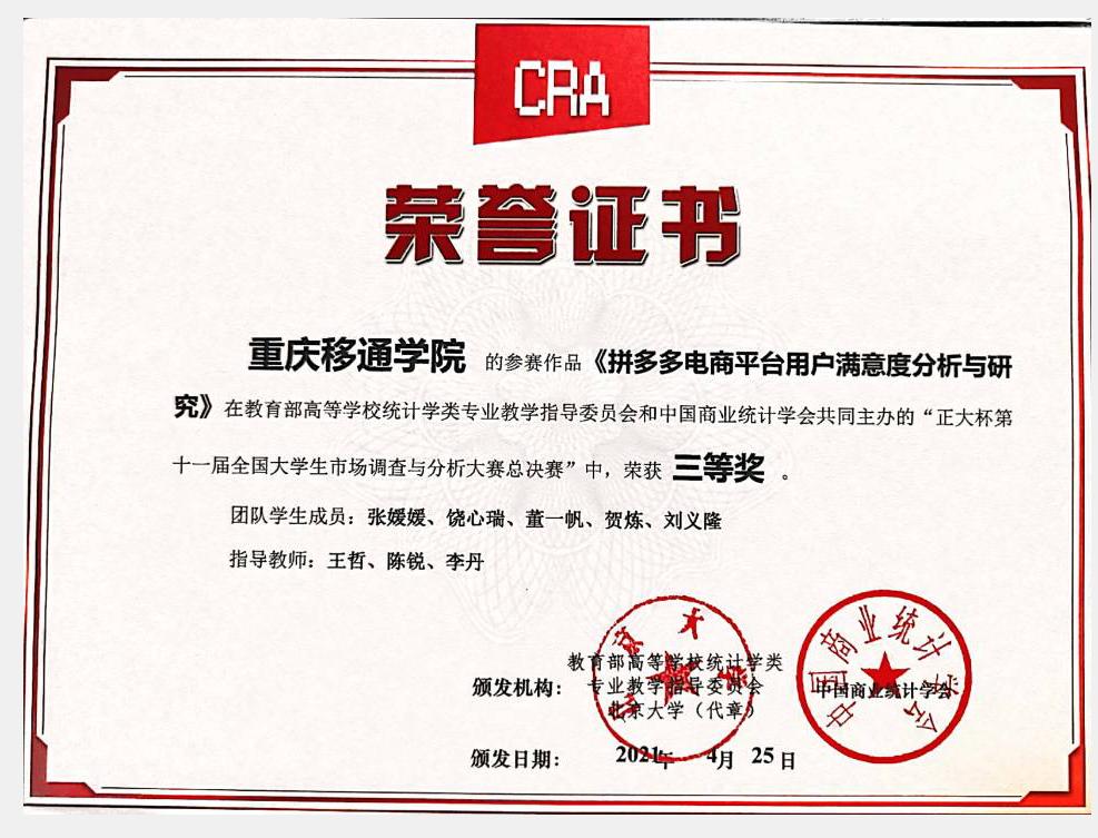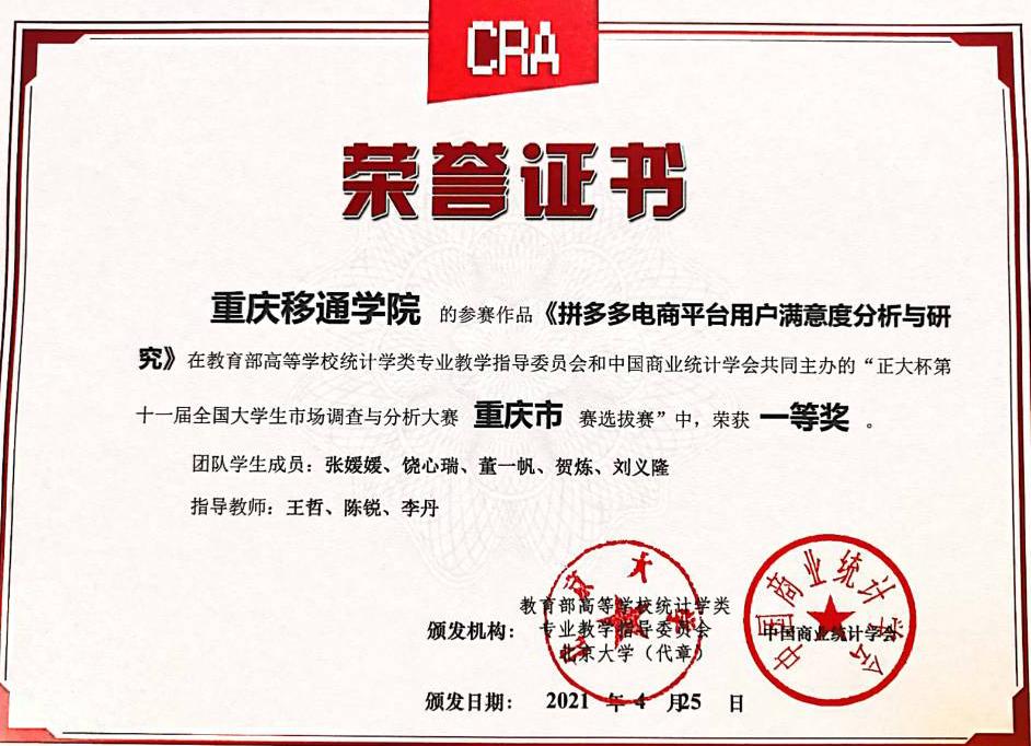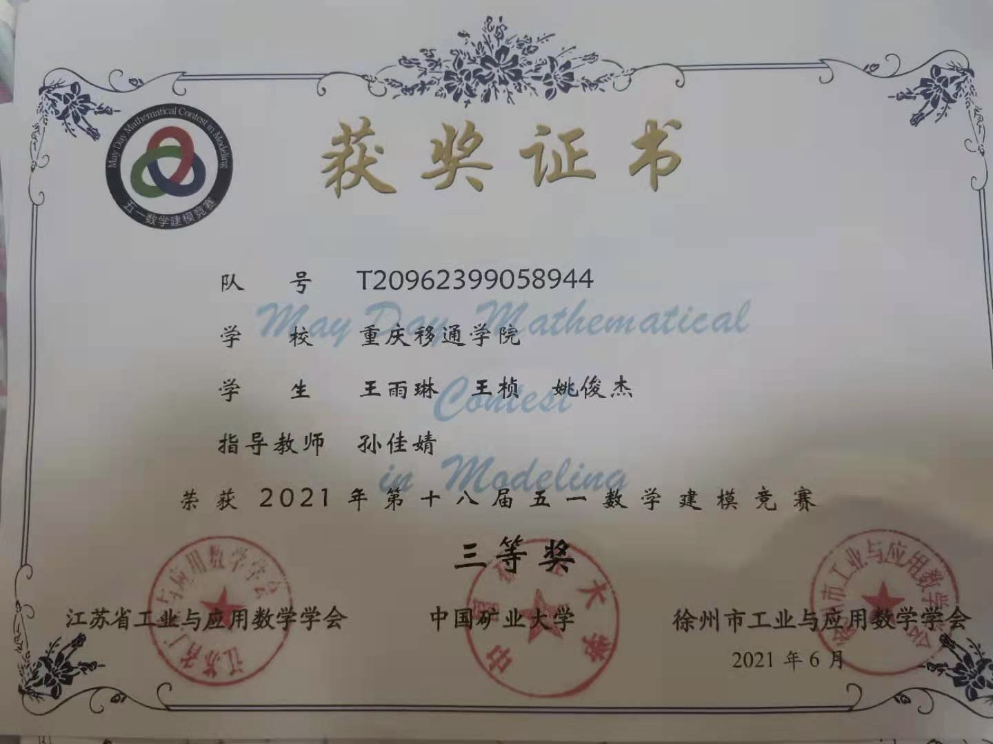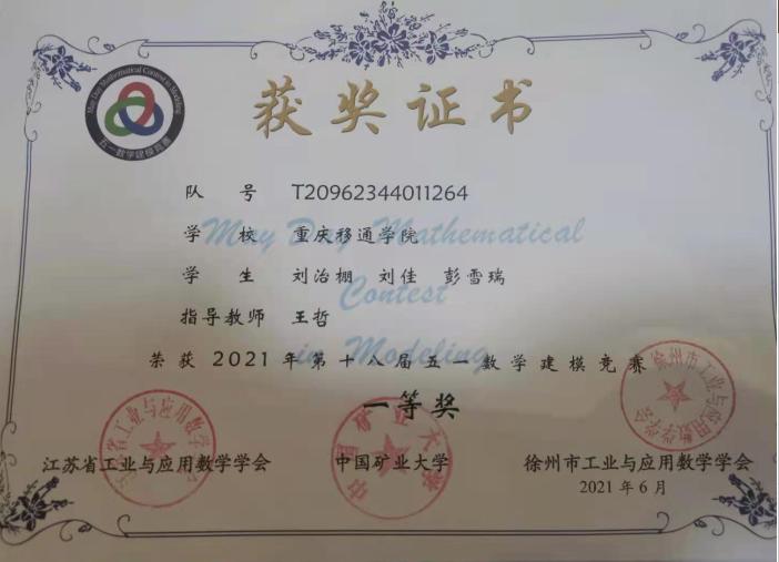 捷报来自于一次又一次的付出,数据艺术工作室的同学们,因心中的热爱汇聚在爱莲书院,每天在书院以勤奋书写青春,七百多个日日夜夜,团队始终如一,在朋辈交流与碰撞中,遇见志同道合的伙伴,以头脑风暴探寻数据与生活美学的最佳创意,以执着的付出、无畏的精神勇夺佳绩。2021年4月25 日团队参加重庆市“正太杯”第十一届全国大学生市场调查与分析大赛荣获省级一等奖,并在同月推荐国奖申报,荣获国家三等奖;2021年5月1日团队参加第十八届五一数学建模竞赛,荣获省级一等奖、三等奖各一个;2021年5月13日团队参加第十四届认证杯第二阶段数学建模竞赛,荣获国家三等奖一个;2021年 5月20日团队参加长三角数学建模竞赛,荣获省级二等奖、三等奖各一个;2021年6月团队参加第十四届全国大学生电工数学建模竞赛,荣获国家二等奖一个。2021年11月团队参加高教社杯全国大学生数学建模竞赛,荣获省级一等奖、二等奖各一个。对此,每每当我们想宣传报道团队的捷报时,数据艺术工作室的学生负责人刘治棚同学总是说:“老师,别急,再等等,我们还会有更好的成绩!”