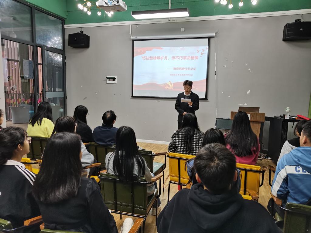 110年前,以孙中山先生为代表的革命党人发动了辛亥革命,结束了统治中国几千年的君主专制制度,近代以来中国发生的深刻社会变革由此拉开了序幕。110年后的今天,为深切缅怀孙中山先生等辛亥革命先驱的历史功勋,继承和弘扬革命先驱的精神,10月27日下午四点,思政教学部于花果书院多功能活动室开展了“青春思索”主题沙龙活动(第27期)——忆往昔峥嵘岁月,承不朽革命精神。本次活动由唐菊相、田婷婷两位老师主持,政治理论教研室教师代表、习近平新时代中国特色社会主义思想研习社代表和各学院2021级二十多位学生代表参加此次活动。