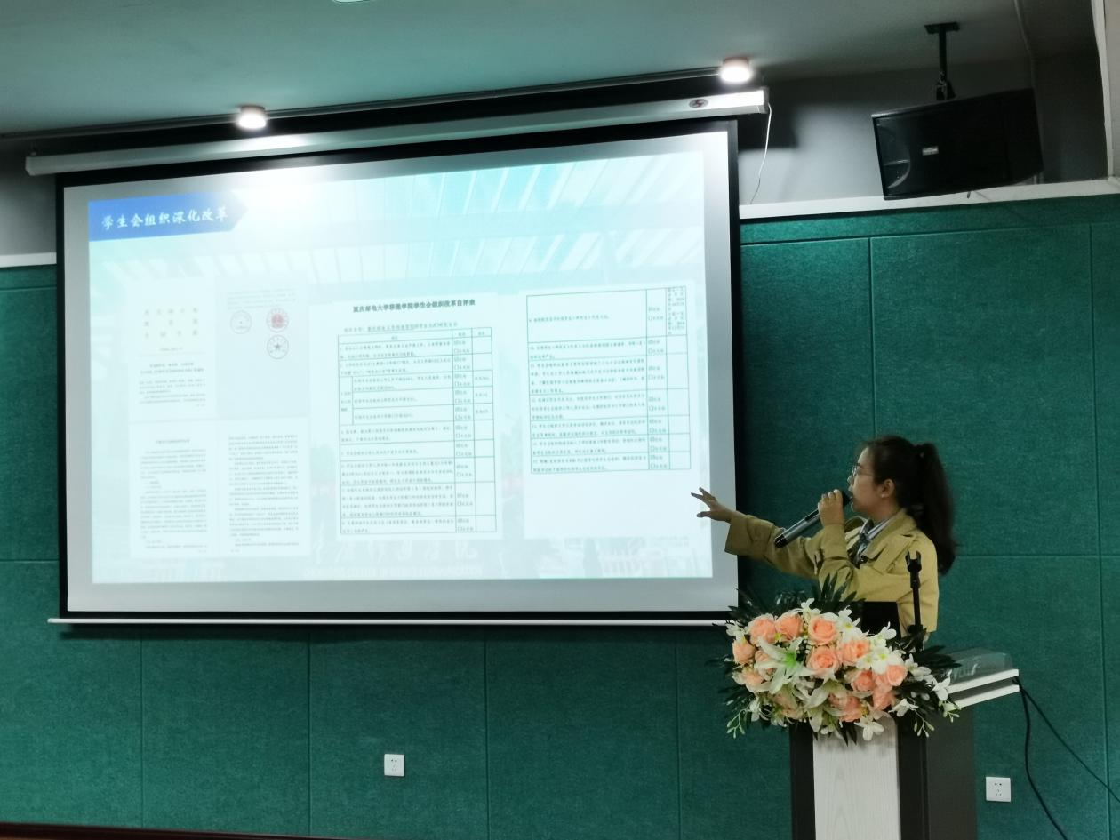 10月10日11:30校学生会主席团执行主席刘欣怡与各学院代表在爱莲书院多功能影音室开展了“深化学生会改革”专题培训。会议围绕四个方面展开:深化学生会改革重点内容梳理;如何召开好学生代表大会;如何开展好“我为同学做件事”实践活动;如何持续深化学生会改革,做好“三级联动”。会议中指出我校“完满教育”应与大数据相结合,着力于学分解读与权益维护,通过悠学派全力打造多彩口袋校园生活。会议中对于学生会的年度考核工作做出了进一步说明,适当增加推荐参加评先评优的名额,对于自身管理不严和改革存在明显缺失的学院学生会进行约谈、通报。最后会议以“心系同学,一心干事”的理念圆满结束。