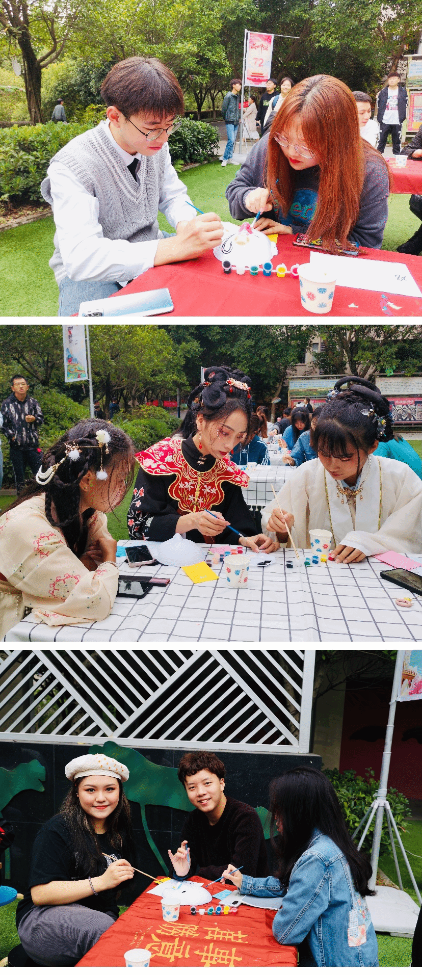画笔为媒,水粉为底。在主持人的介绍中迎来了本次x课堂的下一个环节——“画脸谱”,在这个环节中,同学们以两人为一组分别领取一副空白的面具、一盒颜料和两副绘画工具进行创作。通过刚才对脸谱文化的学习再加上同学们自己的创新想法,一幅幅多彩而新颖的脸谱由此诞生……在创作、绘画过程中同学们认真的眼神、开心的笑脸不断浮现,那挥舞着的画笔不仅传递着色彩布局的艺术思考,更是表达了各自对中华传统优秀文化的致敬。