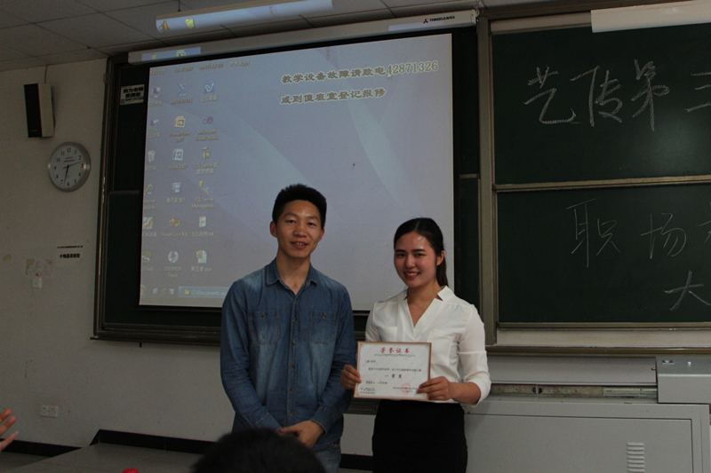 在全部选手都展示结束后,李克伟老师对此次活动进行了细致的总结,主要谈到求职面试中的自我介绍,对岗位的认知度,简历的求职意向必须与个人经历相符,模拟招聘大赛很多需要注意的细节等等。相信到场聆听的小伙伴们肯定都会有所收获,不虚此行。更重要的是,每一位选手都在这个比赛中收获了求职面试的各种技巧和珍贵的体验。随后进行了颁奖环节,艺术传媒学院2014级动画专业的吴静同学以优异的表现了摘得了本次比赛的桂冠。