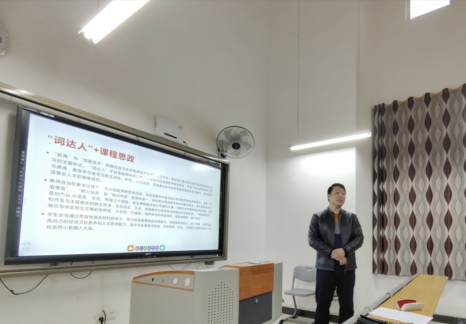 接下来,张旭宁老师以“信息技术与课程思政融合”为主题,分享了“词达人”英语智慧学习平台。张老师首先介绍了“词达人”平台的特色,然后与老师们探讨了如何有效地利用网络互动以及线上线下结合的教学模式,多维度展开课程思政和专业学习的融合。