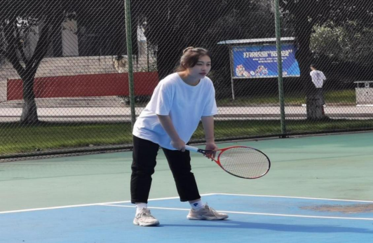 此次比赛精彩纷呈,还有特别嘉宾张琳曼老师的加入。张琳曼老师也经常到网球场训练,她为体验一次正规比赛的乐趣,也兴致盎然的加入本次迎新杯比赛。在赛场上,她由老师的角色转变成为活力满满的运动员,一路过关斩将,冲入决赛,英姿飒爽的风采,让人赞叹。