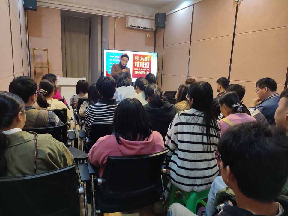 会议伊始,赖婷婷老师引用了人民日报刊发的重磅文章:《没有任何力量能够阻挡中国前进的步伐》,并结合日本东芝事件和法国阿尔斯通事件,具体分析了美国对他国企业实施技术“卡脖子”的卑劣行径以及中国科技自立自强的必要性。她谈到,孟女士获释回到祖国,这是中国共产党践行初心、捍卫本国公民和企业的正当合法利益的现实写照,如今的祖国日益强大,面对困难和挑战,我们不必为了“豁出去”而以卵击石,亦不必为“活下去”而苟且偷生,中国不是日本和法国,华为也不是东芝和阿尔斯通,孟晚舟平安归国,这是党中央坚强领导、中国政府不懈努力的结果,是中国人民的重大胜利。通过事件解读,希望同学们明白,个人利益与国家利益是密不可分的,大学是人生中最美好的阶段,也是长知识、增本领的关键阶段,望大家能珍惜、利用好大学时光,勤练本领,在国家实现科技自强的发展过程中,需要青春激昂的你们,用奋斗来抒写韶华。