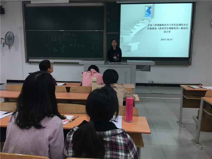 最后,周洪燕老师在关于“全国工程测量新技术与变形监测技术培训”的分享中谈到,本次培训主要从《建筑变形测量规范》的修订内容与强制性条文,提高技术人员对工程测量新技术的应用,解决关键测量技术问题,研讨FAST天线与港珠澳大桥测量实际案例这四方面进行了学习。通过短暂的学习,她认为任课教师应该注重教学内容的更新,为避免教材内容的陈旧在选择教材时应认真看其内容。针对教师本身,由于长期脱离社会实践,接触新技术新知识的机会较少,系部可多和校企合作单位协作,请专家来校举办一些专业讲座,同时老师也应多出去参加各类专业培训,以提升教师的知识储备。