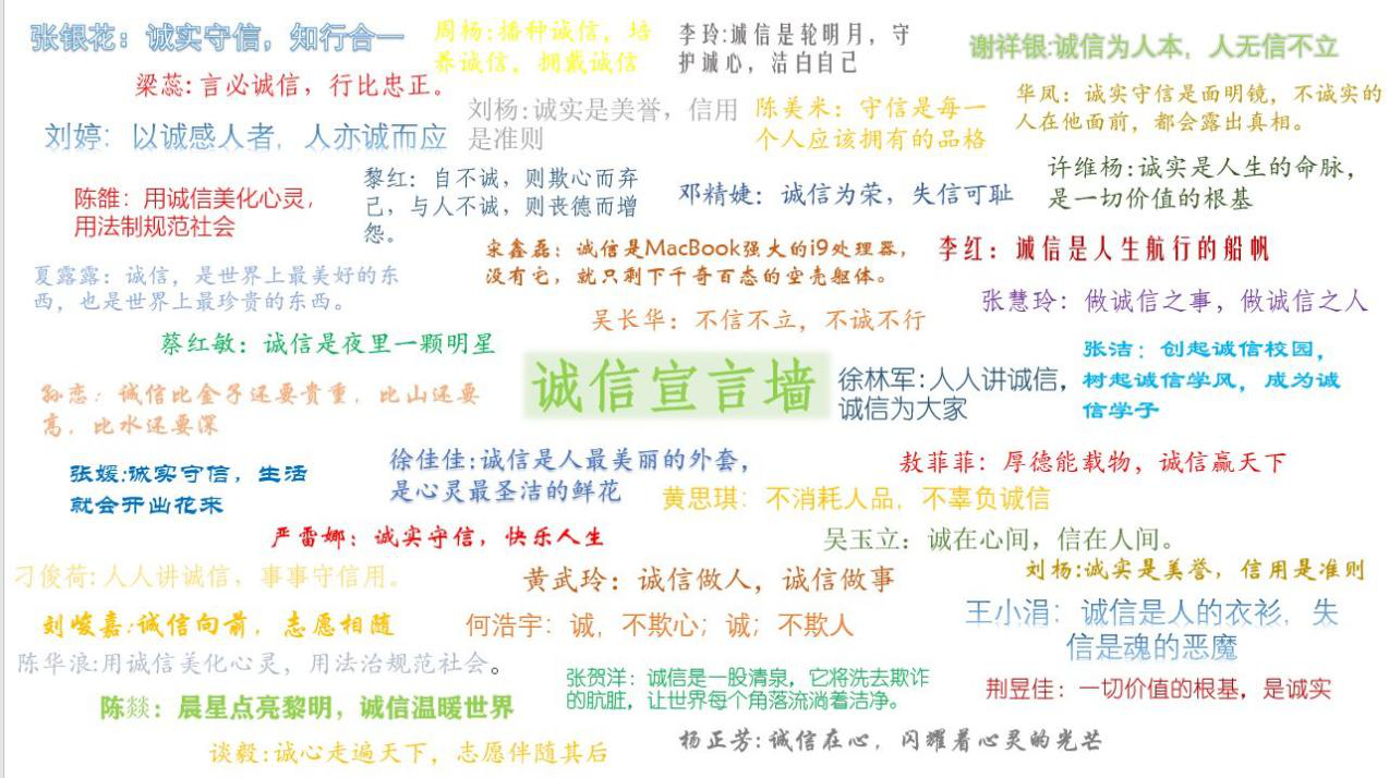 在青信解读中,汪小丁老师提出“青年信用体系建设是社会信用体系建设的重要组成部分,是广大青年践行社会主义核心价值观的制度化载体。”诚信是高尚的品德,是公序良俗,是国家重要的软实力。青信体系建设旨在引导广大青年诚实守信,为党和国家培养守信用、有担当的合格接班人,引导广大青年乃至全社会提高诚信意识和信用水平。通过汪小丁老师的讲解,同学们深刻理解到了青年信用体系建设的重要性。