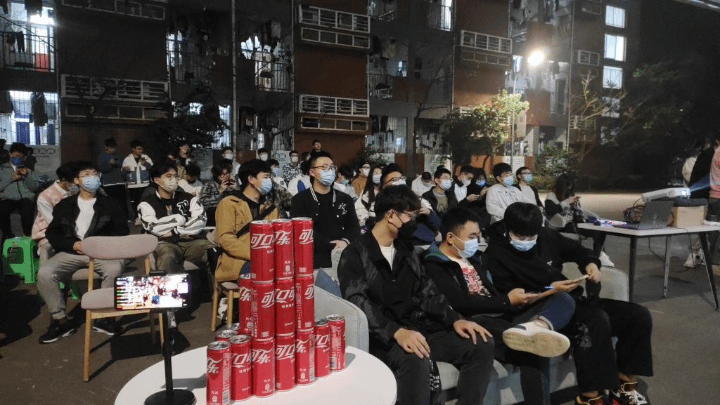 光影投射,LIVE开场,露天电影是一种情怀。当露天电影遇上电子竞技,更像是夜的狂欢。无数人的回忆集于一地,在一片欢呼声中,英雄联盟2021年全球总决赛S11决赛正式开始。来来往往的同学们无论是否是英雄联盟的玩家都纷纷为这精彩的“厮杀”停滞住脚步。电子竞技的魅力势不可挡,尽管严寒,也丝毫没有减退同学们摇旗呐喊为EDG战队加油的热情,“EDG NB”“EDG太帅了”“EDG干得漂亮”……不同场所响起相同的声嘶力竭的欢呼。而职业选手们的操作不同于同学们的激情,一进一退招招见血,每步走位、买装、开团,处处是谋划,精彩绝伦的比赛吸引了所有人的目光。屏幕内外两处“战场”相互呼应,线上与线下处处闪现着思维的锋芒,职业赛场和鱼城书院观战区的交错,更增加了活动的精彩程度。