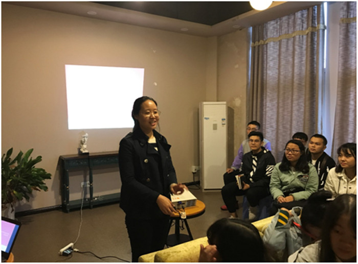 心理咨询中心的田雨老师将未来的某些规划告知,希望以此来促进我们对各自职责的认识。田老师希望 我们能好好相处,建立默契,为今后的工作一同努力,幽默生动地语言带动了全场气氛,也使同学们认识到 了在工作中交流的重要性。